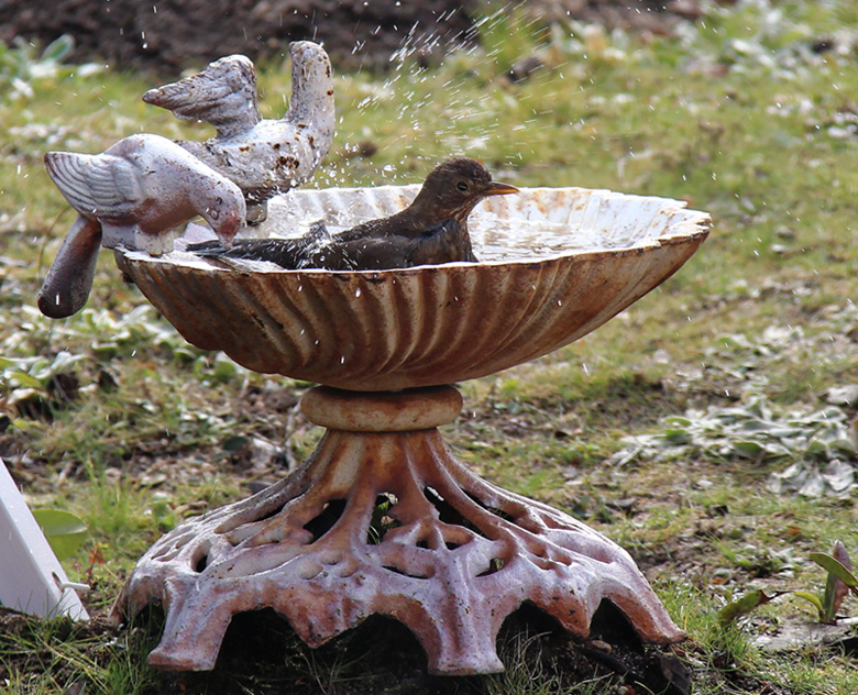 Pas besoin d'une grande piscine pour contenter les oiseaux. Photo prise le 15/02/2015.