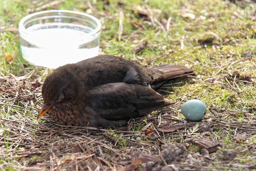Que s'est-il passé mardi 10 mars ? Madame merlette est restée prostrée sans bouger dans le jardin et cela pendant plusieurs heures. Je lui ai donné à boire, en vain. Je la croyais mourante mais elle a pondu un œuf ! Après plusieurs heures, elle a enfin réussi à s'envoler et elle nous a laissé son œuf.