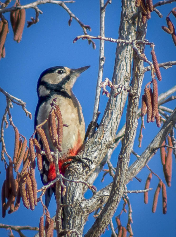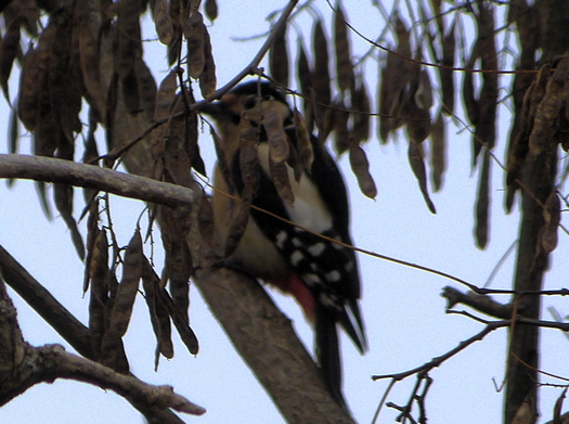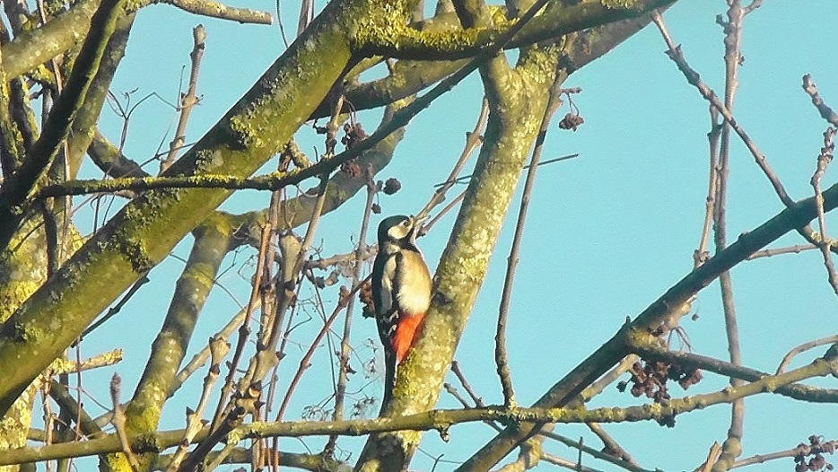 Photo prise le 14/12/2017. Pic épeiche perché dans le noisetier d'Italie du jardin familial.