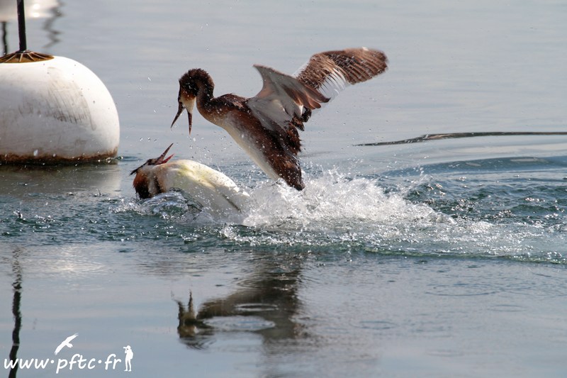 Le long du quai Wilson à Genève, les nids de grèbes sont proches les uns des autres, d'où quelques conflits de voisinage assez musclés. hoto prise par Fabienne.