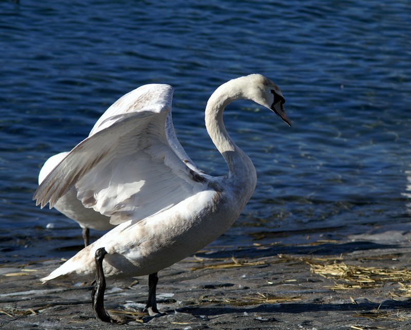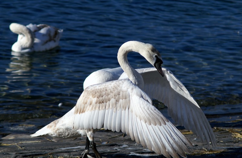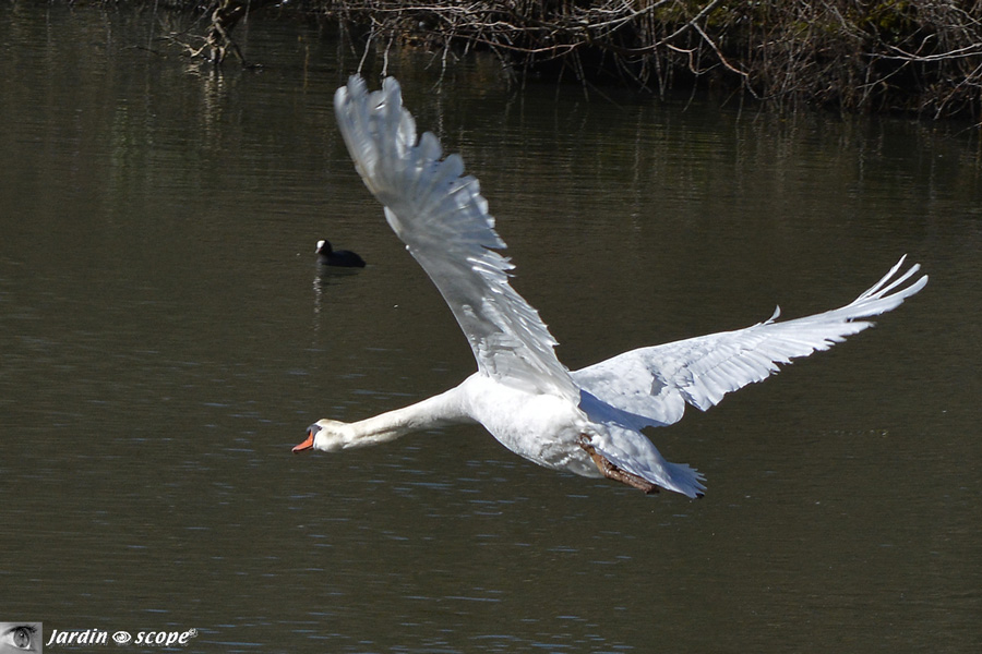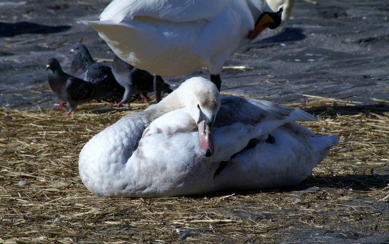 Photo prise par Eric Andrey le 24/02. Le Cygne tuberculé met quatre ans pour acquérir son plumage blanc définitif.