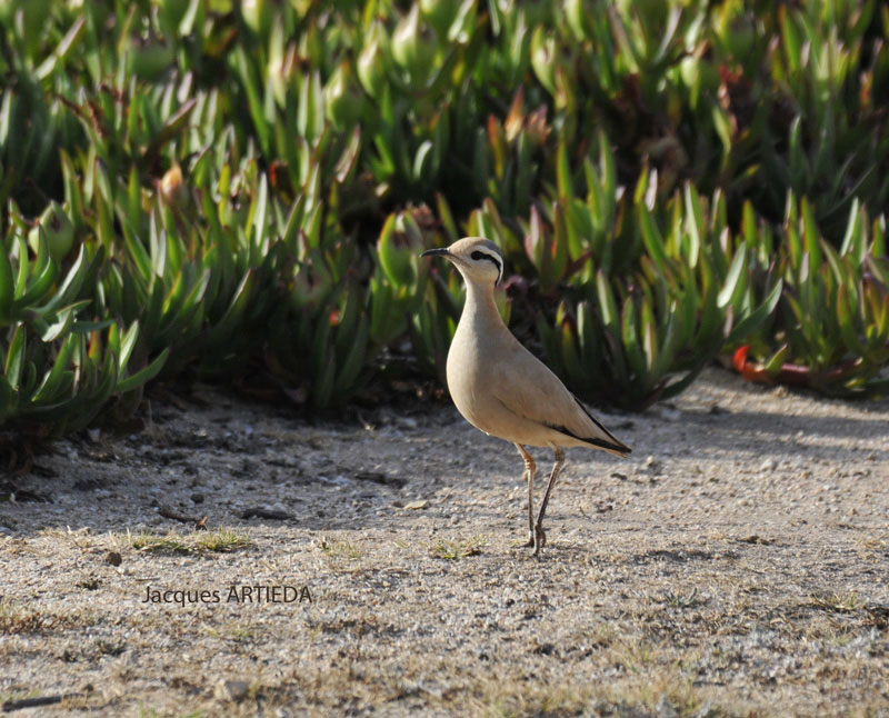 Visitez mon site web Nudipassion et le blogCorse-Ornitho. Oiseau découvert le 15 mai 2017 par Phillip Edwards et encore présent le 21 mai 2017 au moins en contrebas de la tour génoise. Ce limicole de couleur sable, aux sourcils blancs nets et aux longues pattes, niche dans les milieux désertiques et semi-désertiques dans les îles Canaries et du Cap Vert, en Afrique du Nord, au Moyen-Orient jusqu'en Inde, en Asie centrale et à l'est de l'Afrique. Il court fréquemment puis s'arrête brusquement. C'est un oiseau occasionnel très rare en Europe, surtout noté au printemps, peut-être du fait du phénomène du dépassement d'aire printanier (lire Comment arrivent les oiseaux rares ?). Près de dix données ont été recensées en France (voir une synthèse de données récentes et plusieurs photos dans notre galerie), dont deux dans la plaine de la Crau (Bouches-du-Rhône) (lire Deux Courvites isabelle en 2004 et en 2011 dans les Bouches-du-Rhône). Il a niché en Andalousie en 2001.