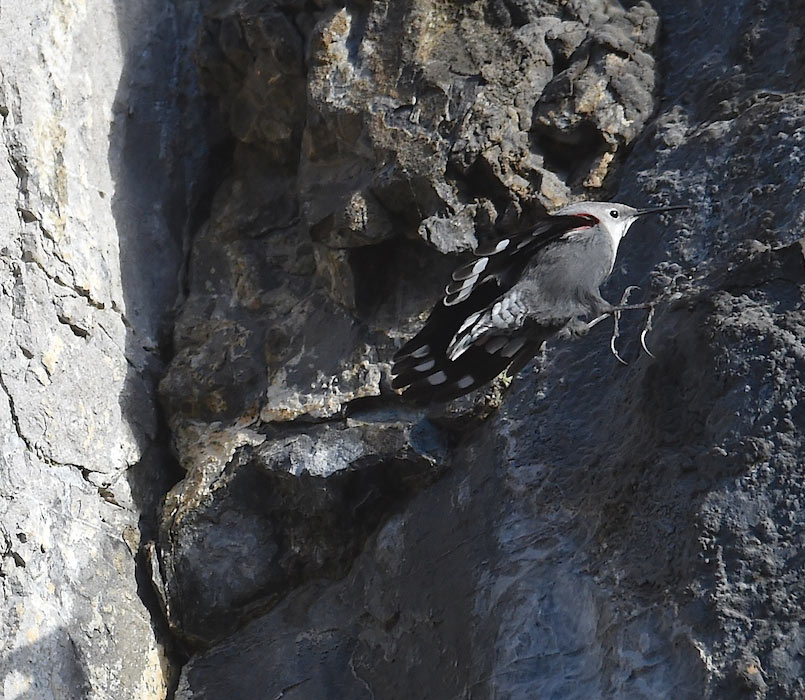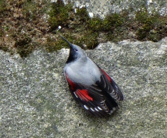 Photo prise le 30/03. L'oiseau est présent sur ce monument depuis janvier au moins et est désormais en plumage nuptial. Lire Le Tichodrome échelette, un "amateur" du patrimoine culturel français..