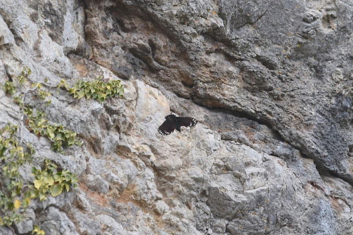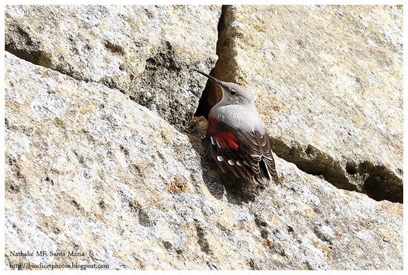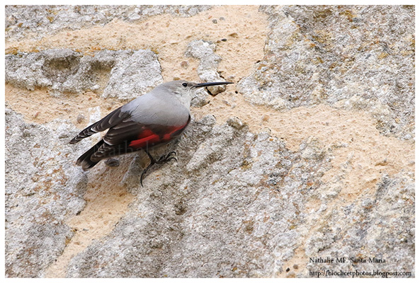 Photo prise le 15/11/2015. Je suis arrivé pour 8 h 40, je l'ai observé pendant une quinzaine de minutes puis il est parti vers la cathédrale vers 9 h 00. Il est resté pas mal de temps ce matin sur le château. Lire Le Tichodrome échelette, un "amateur" du patrimoine culturel français.