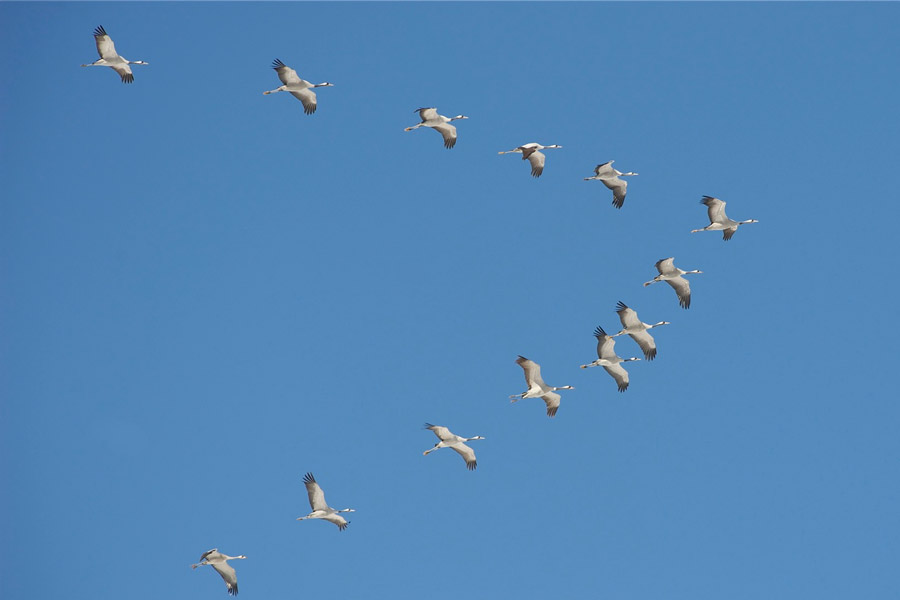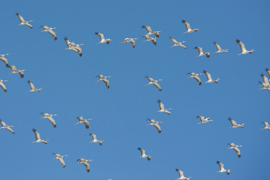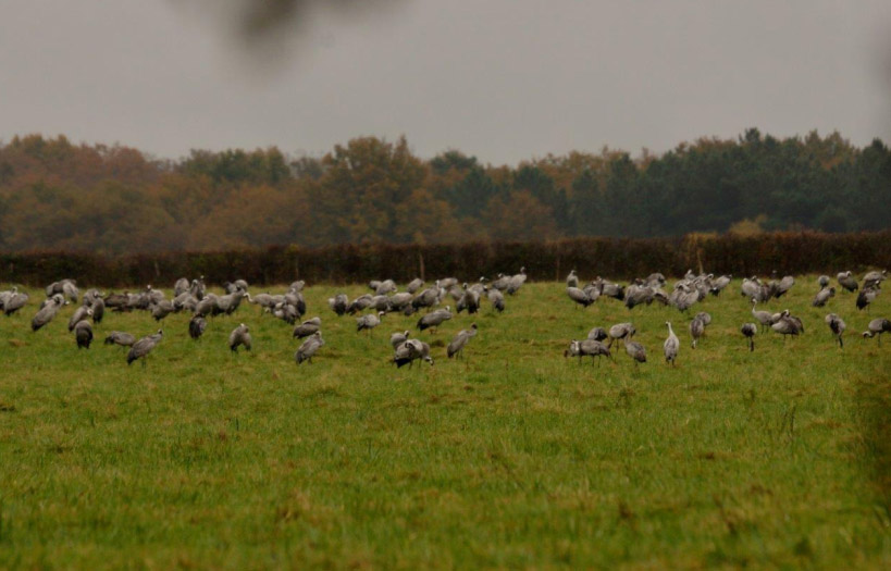 Photo prise en novembre 2014 : très gros passage de Grues cendrées (entre 15 000 et 20 000 oiseaux ?) en Brenne (Indre) entre le 12/11 et le 15/11 2014. Visitez le site web www.artsenbrenne.fr. Lire notre article Observer les oiseaux dans la Brenne.