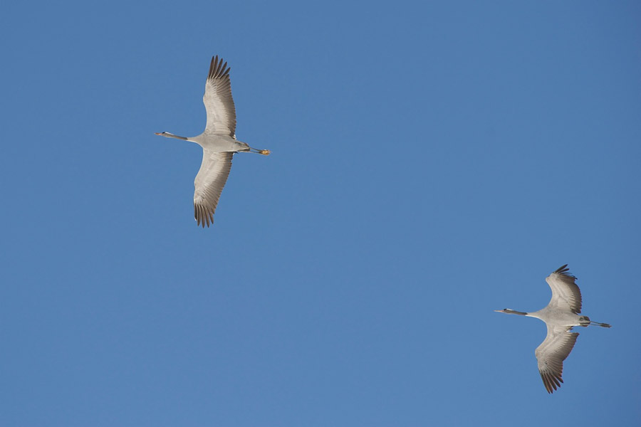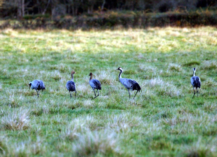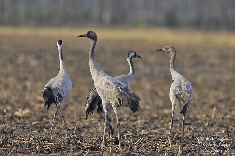 Deux membres d'une famille de quatre grues. C'est la "tendance" de cette année. Il y a de nombreuses familles où deux jeunes accompagnent les adultes, contrairement aux autres années où il n'y en avait qu'un seul.