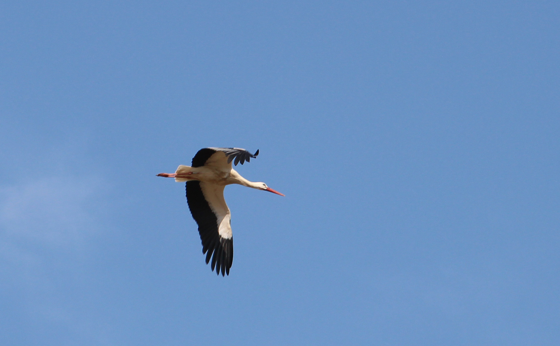 Photo prise le 15/02/2019 par Luc Nardin. Important (500 oiseaux) vol de cigognes le 14/02 en direction du Nord, en plusieurs groupes : le premier à 11h45 et le 7ème à 13h16.