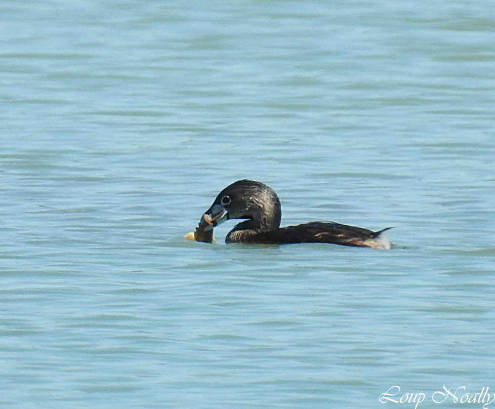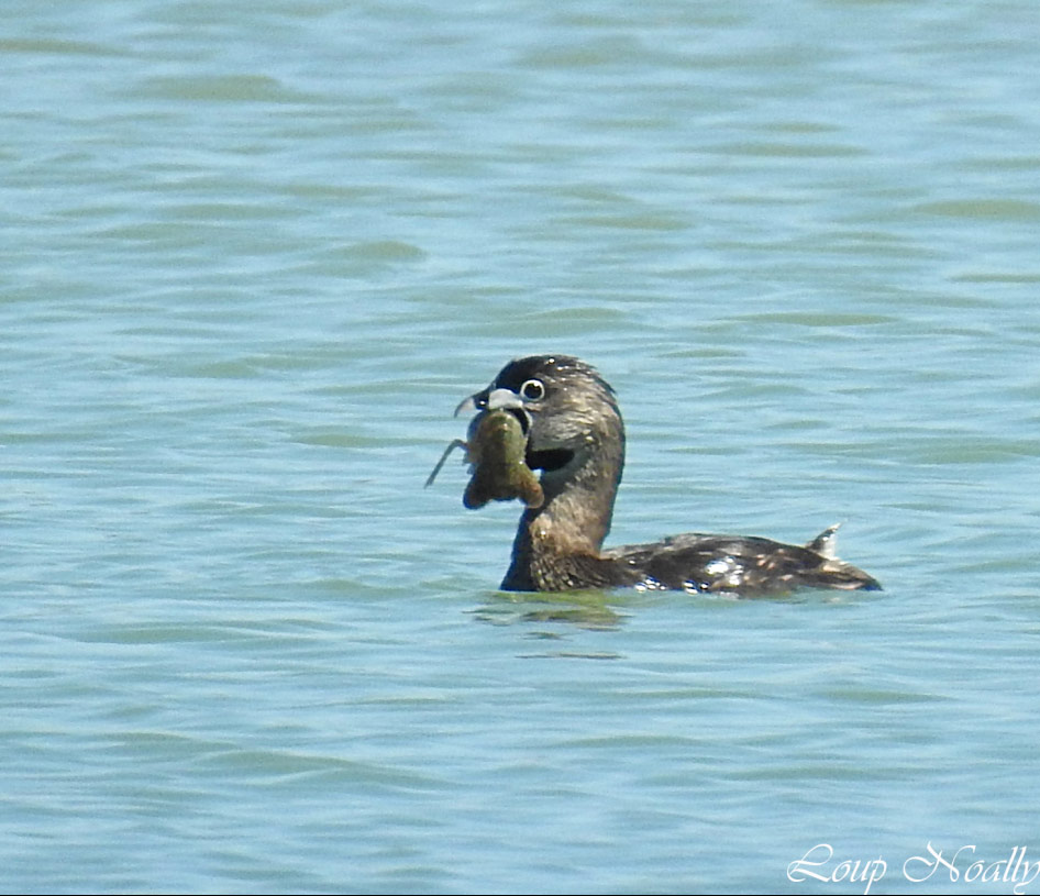 Grèbe à bec bigarré ayant pêché une écrevisse