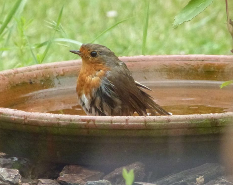 Rougegorge familier prenant un bain