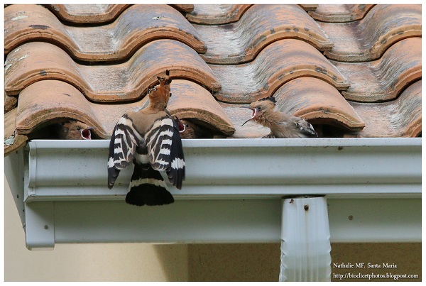 Photo prise le 24/05/2016. Pour la troisième année, la nichée des Huppes fasciées élevées sous le toit de mon refuge LPO est proche de l'envol. Quatre jeunes sont sur le départ en cette fin mai, c'est un record. D'autres photos de la nichée sont disponibles sur Birdwatching and Photography.