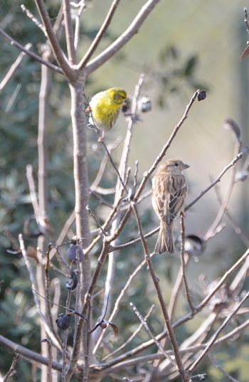 Couple. Lire Identifier les oiseaux du jardin en hiver.