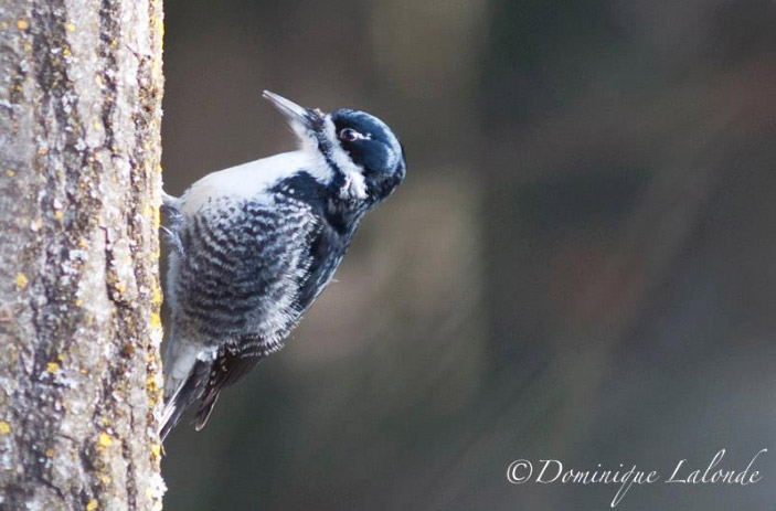 Photo publiée le 27/02/2016. Visitez ma page Facebook Dominique Lalonde-Cinéaste naturaliste et mon site web. Lire Le Pic à dos noir dépend des incendies de forêt en Californie.