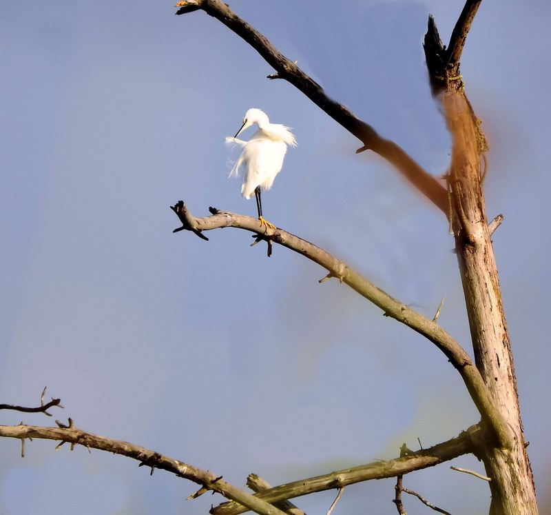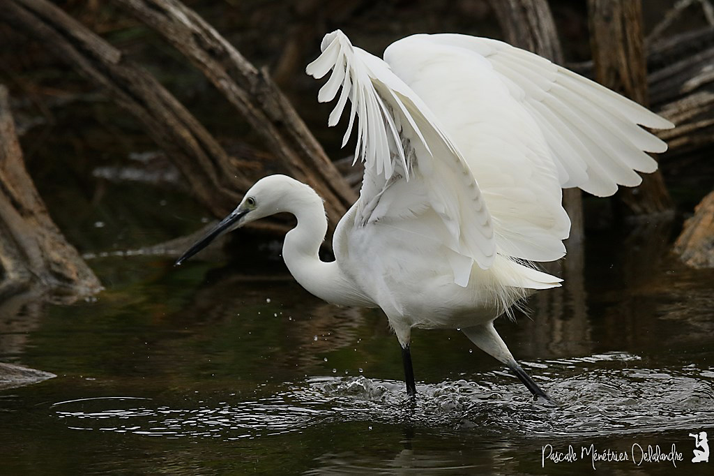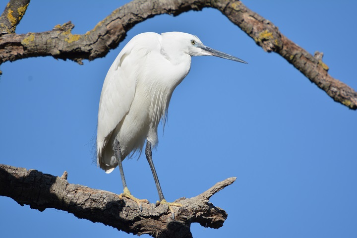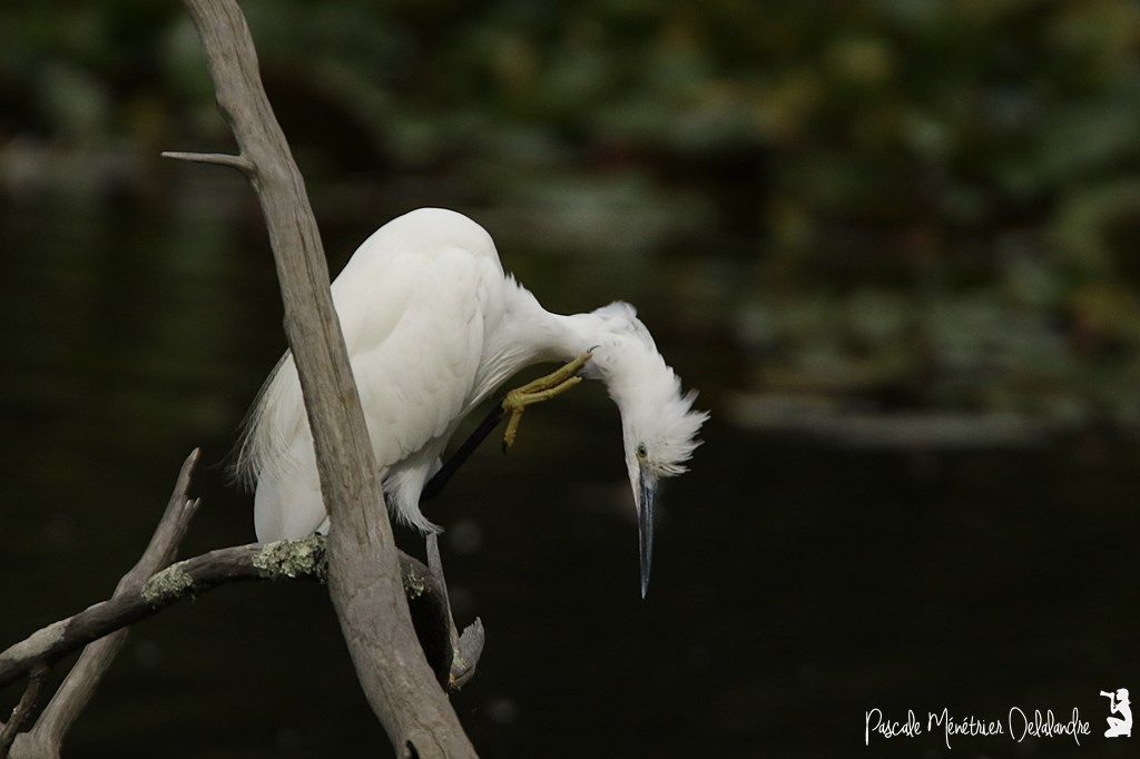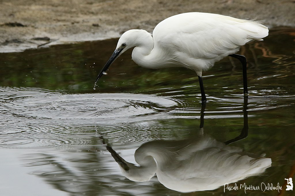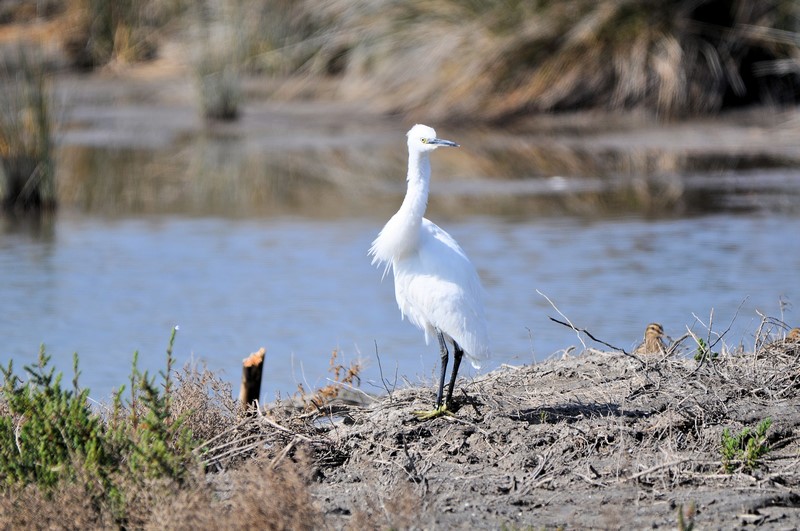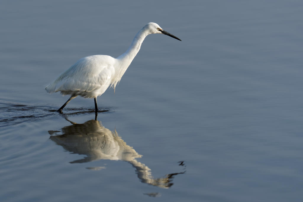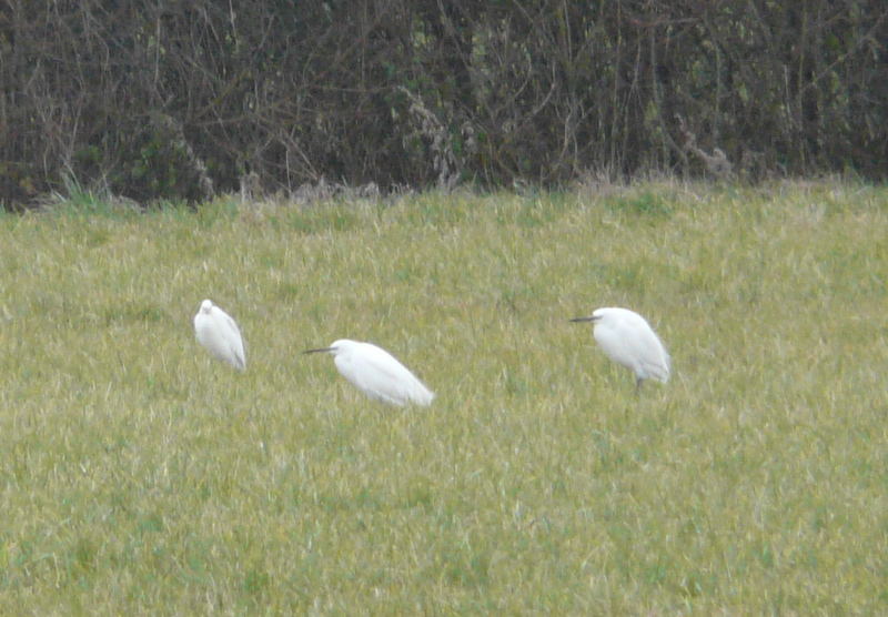 Photo prise le 13/03/2016. Les 2 aigrettes l'une après l'autre, ce qui permet de bien les différencier. Lire Observer les oiseaux dans la réserve ornithologique du Teich.
