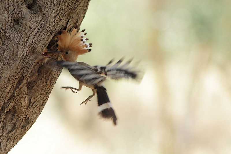 Nichée dans une cavité d'un vieil olivier d'un jardin public. L'un des adultes est bagué (impossible à lire)