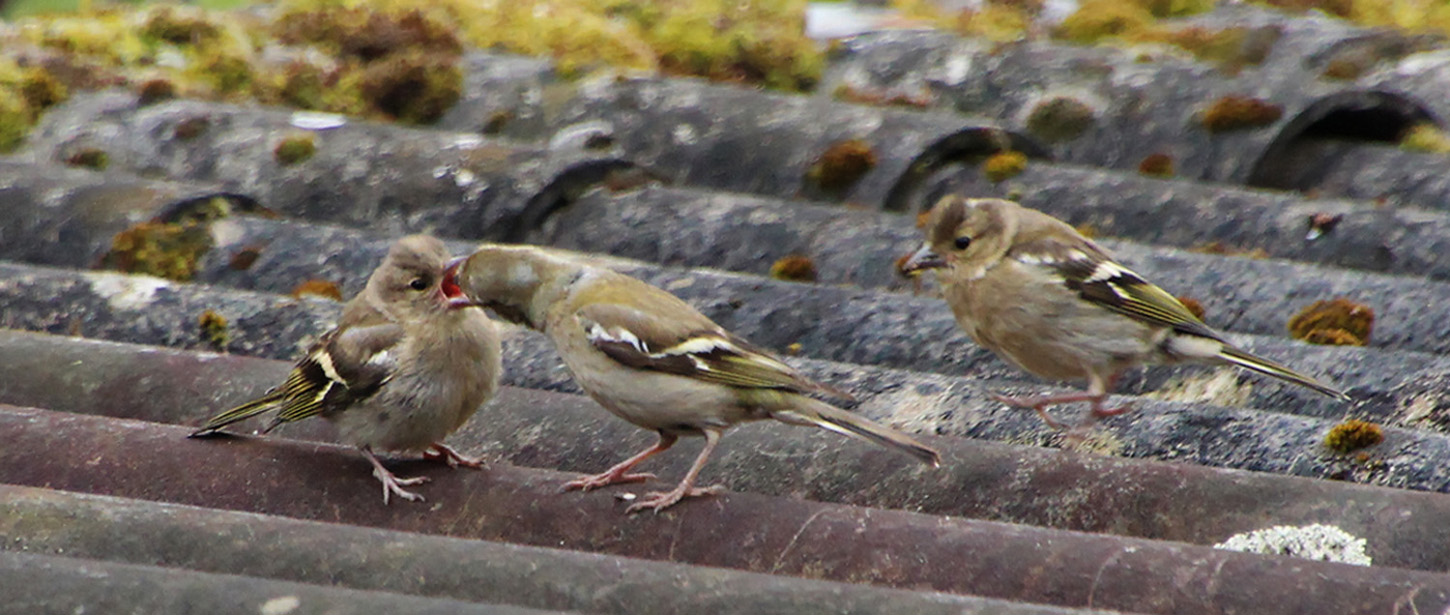 Beaucoup d'animation au jardin : nombreux petits nourris par leurs parents.