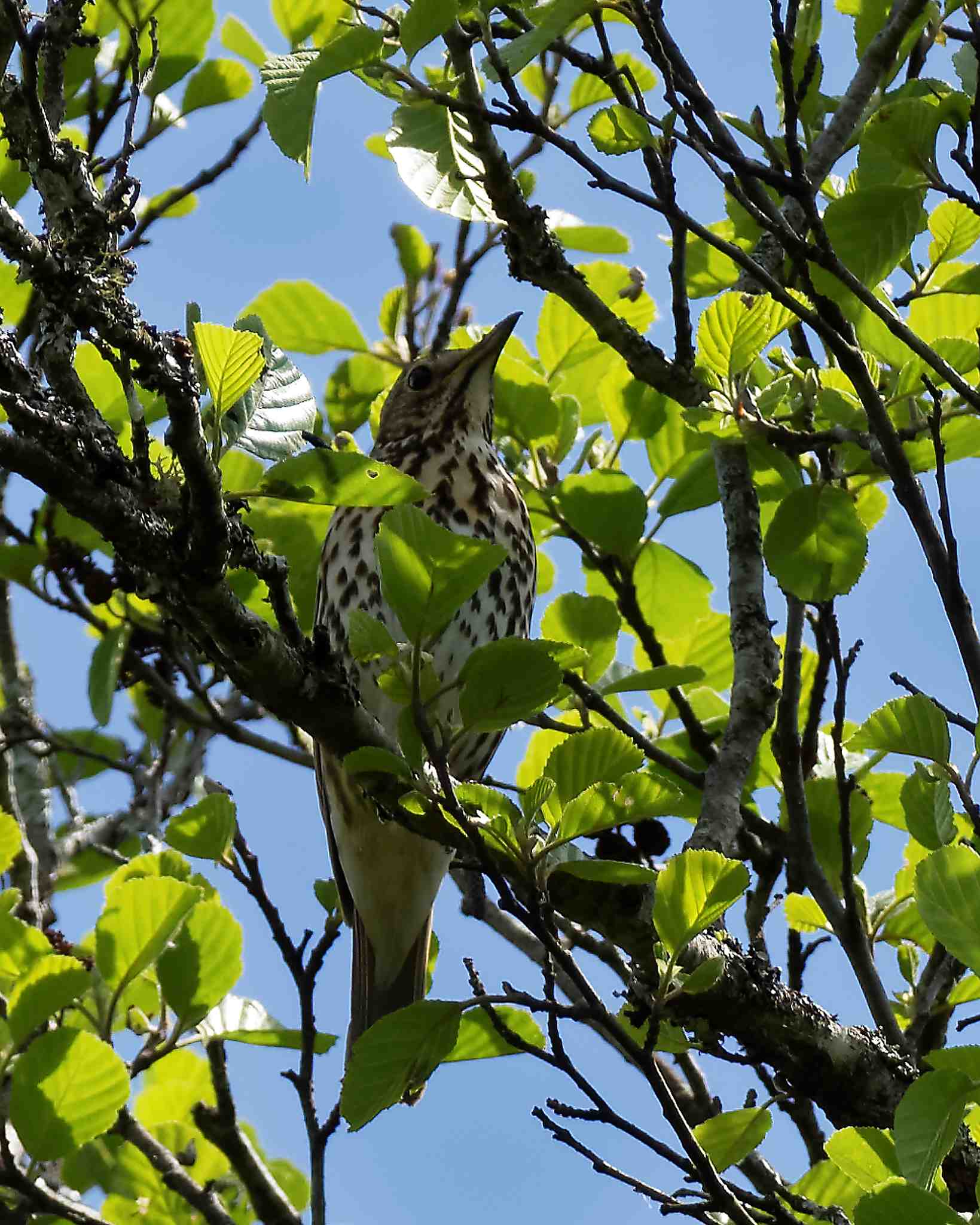 Attiré par son chant, il nous a fallu un moment pour la débusquer dans ce feuillage. Photo prise le 17/05.