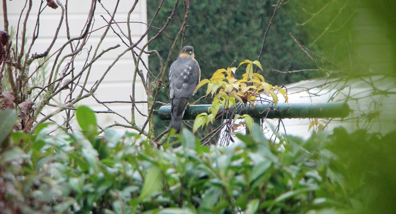 Il est revenu au même endroit sur mes fils à linge en pleine ville. Photo prise le 15/12. Lire Prédation de l'Épervier d'Europe sur les oiseaux des jardins : que peut-on faire ?.
