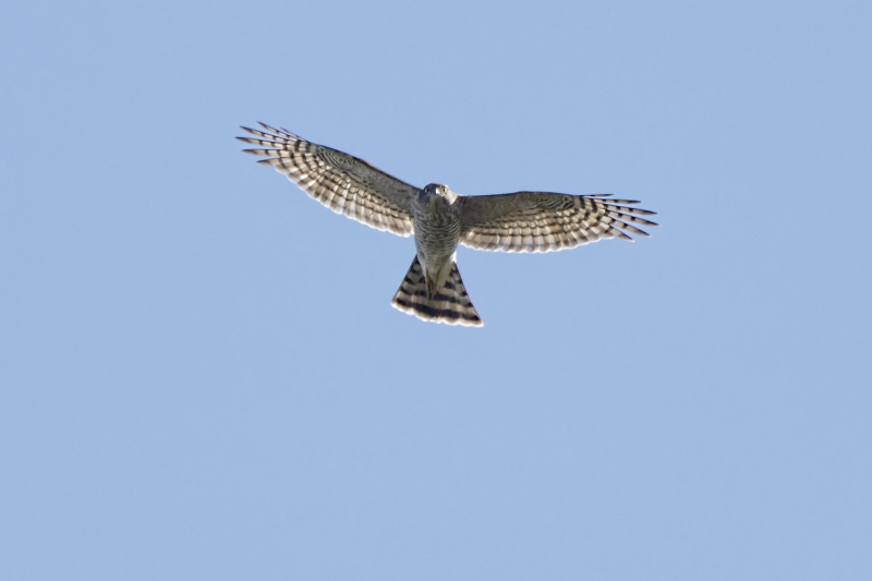 Il passe de temps en temps au-dessus de la maison. Lire Différencier l'Épervier d'Europe de l'Autour des palombes.