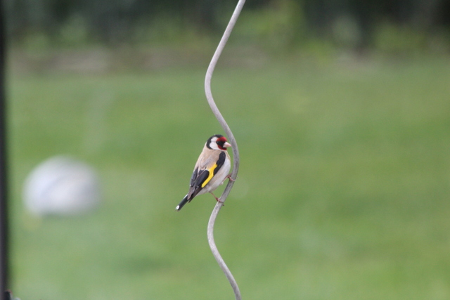 Photo prise le 04/05. Moi si calme, voici un "coup de gueule" : ce Chardonneret élégant bagué a un mal fou à se poser, du mal à voler à cause de son baguage. Imaginez-vous avec un poids de X kilos à votre cheville 24h/24 à vie. Il me fait pitié. Une fois posé, il ne peut plus bouger et picore autour de son rayon d'action. Celui-là ne risque pas de se reproduire.