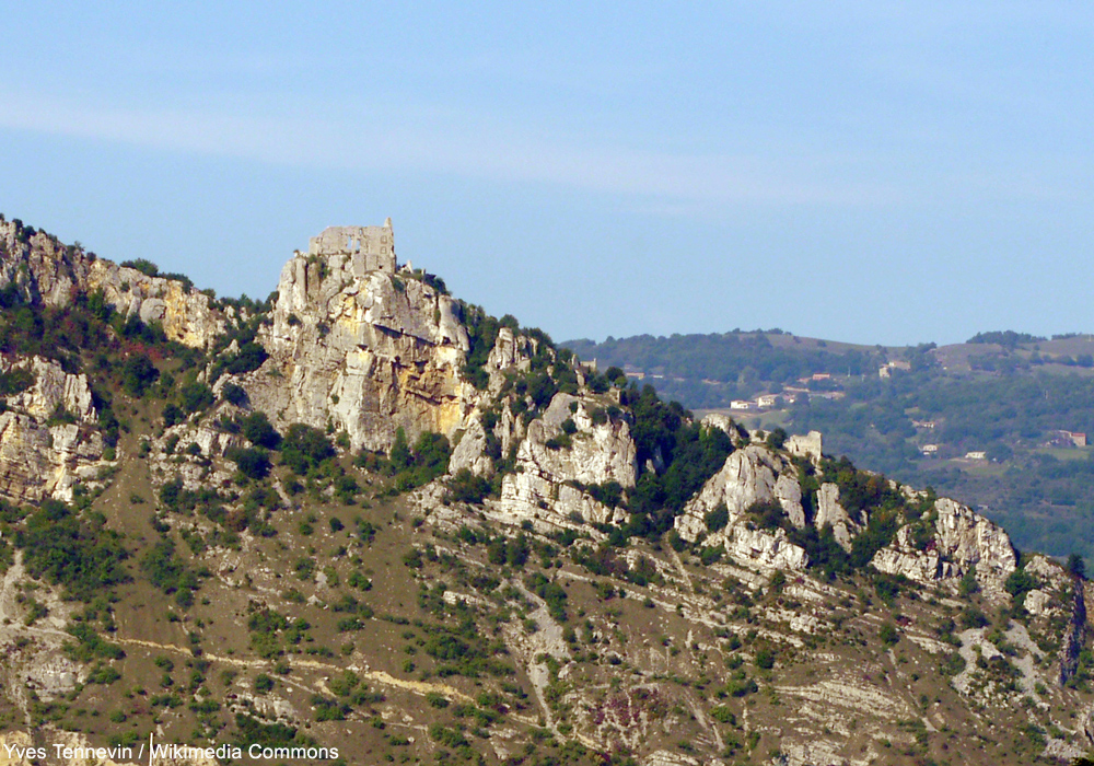 Ruines sur la montagne de Crussol (Drôme) : ce massif calcaire accueille une flore et une faune riches (cliquez sur la photo pour l’agrandir). |