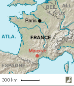 Le village de Minerve (Hérault), situé dans le parc naturel régional du Haut-Languedoc, a une histoire ancienne, mouvementée et tragique : le premier bûcher de la Croisade des Albigeois y fut organisé en 1210 dans le cadre de la lutte contre les « hérétiques » cathares. C’est aussi l’un des plus beaux villages de France : il a été construit sur un éperon rocheux calcaire à la confluence de deux étroits canyons creusés par le Brian et la Cesse, deux cours d’eau aux débits capricieux qui ont également formé deux « ponts » naturels que l’on peut arpenter.