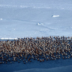 Eiders de Steller (Polysticta stelleri) au large de l’île de Saaremaa (Estonie).