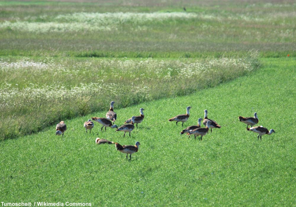 Grandes Outardes (Otis tarda) dans le parc naturel de Westhavelland près de Garlitz dans le Brandebourg (Allemagne).