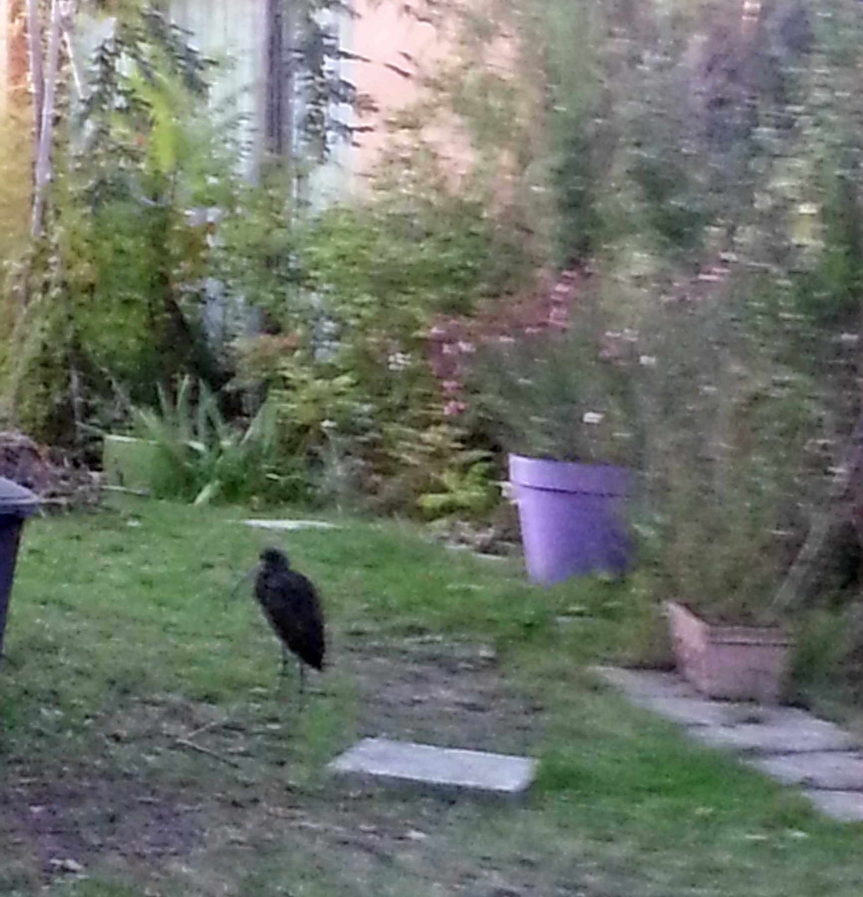 Il est assez petit (environ 50 cm) et très noir. Arrivé en fin d'après midi vers 19h00, pas farouche (on pouvait l'approcher à 10m), il est resté immobile jusqu'à la tombée de la nuit puis s'est mis sous une table. Le lendemain matin au lever du jour il n'y était plus.