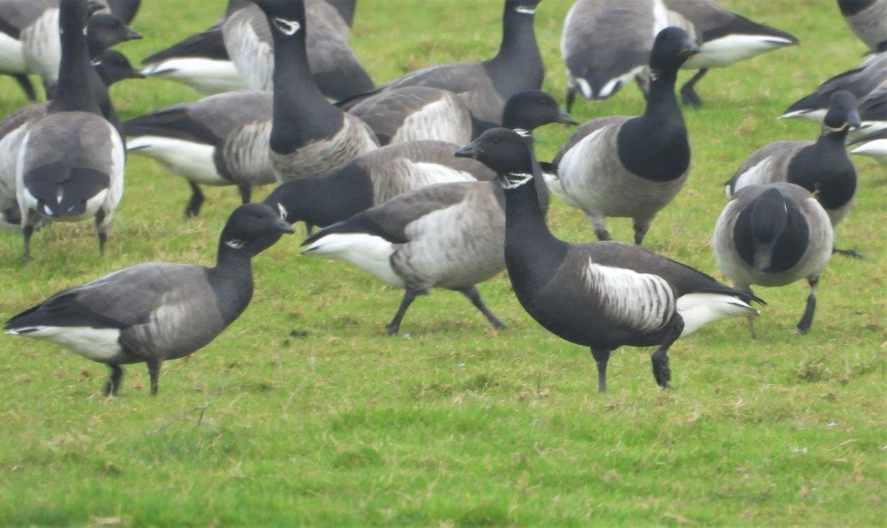 Vue parmi plusieurs centaines de Bernaches cravants à ventre sombre et à ventre pâle.