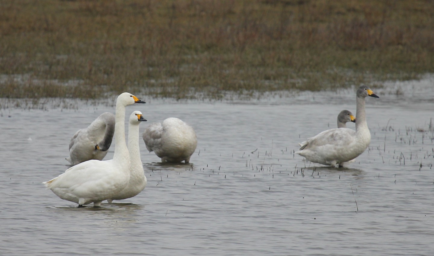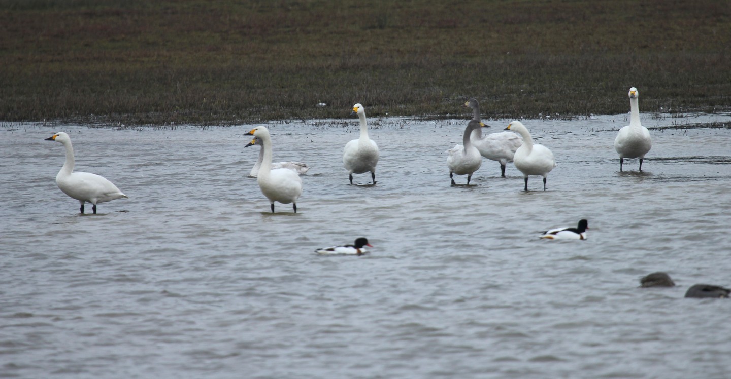 12 Cygnes de Bewick dont 6 adultes toujours présents le 13 février dans le parc du Marquenterre.