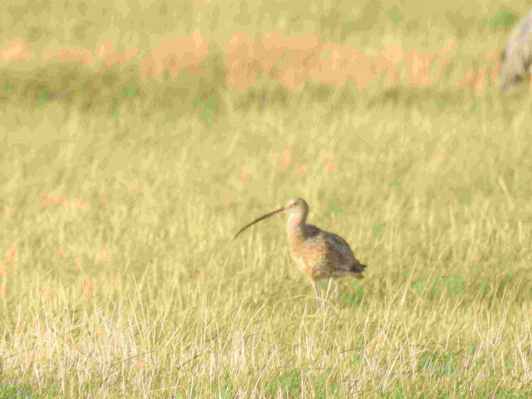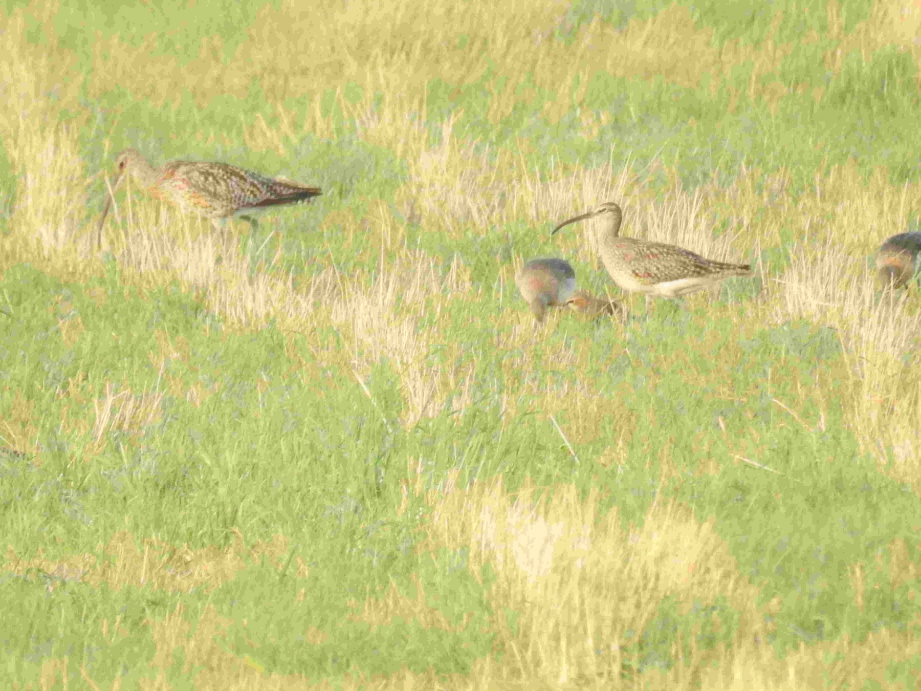 nikon P900 1: un Courlis cendré en compagnie de 10 Coulis corlieux dans une prairie.