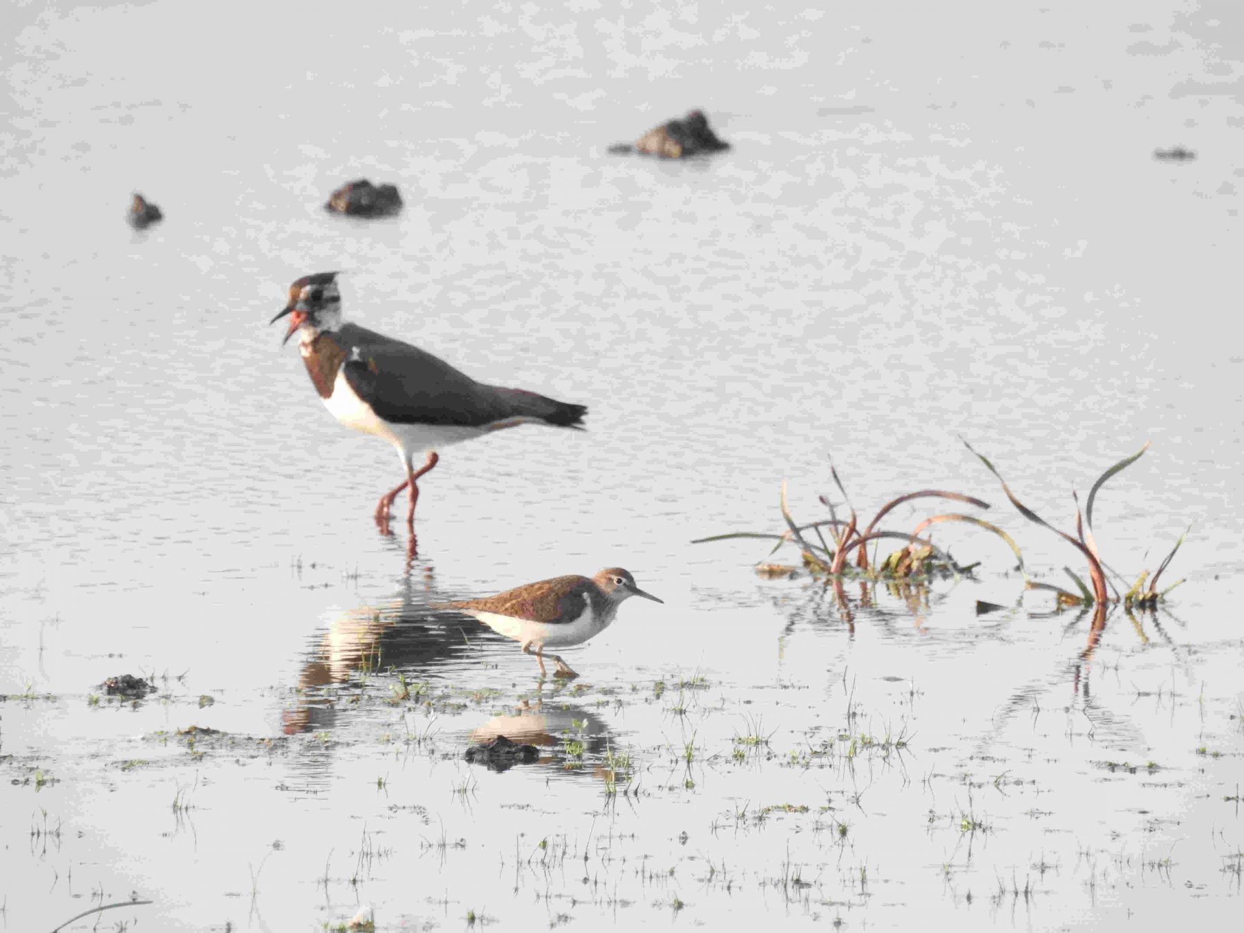 nikon P900 : 4 chevaliers guignettes avec des Vanneaux huppés.