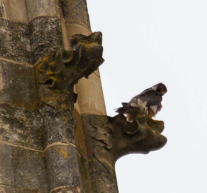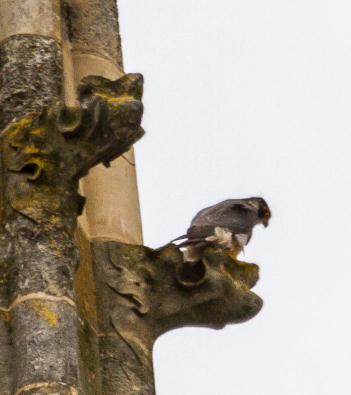 un couple de faucons pélerin perché chacun sur une tour de la cathédrale de Bayonne ! Je n'ai pu en photographier qu'un de très loin avec une lumière difficile vu le temps couvert et légèrement pluvieux !
