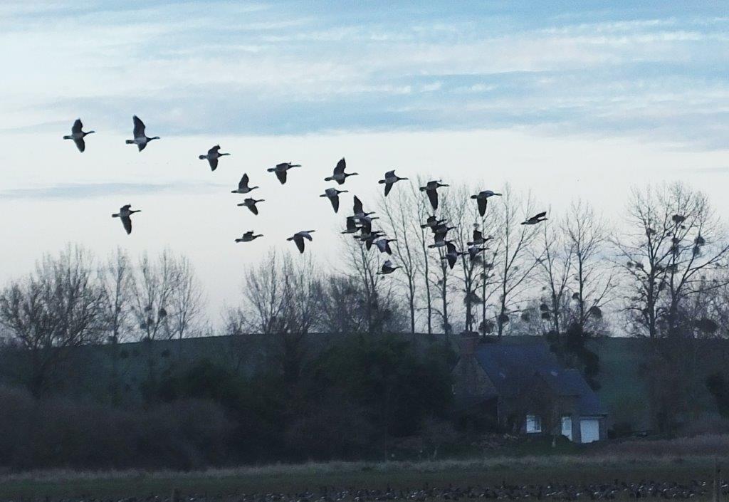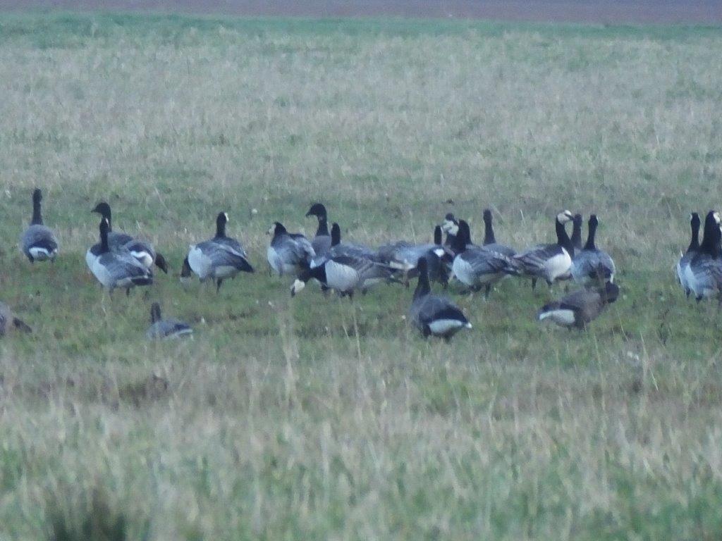 Sur la Prairie rive droite de la Sée. En périphérie de la grande concentration de Bernaches cravants