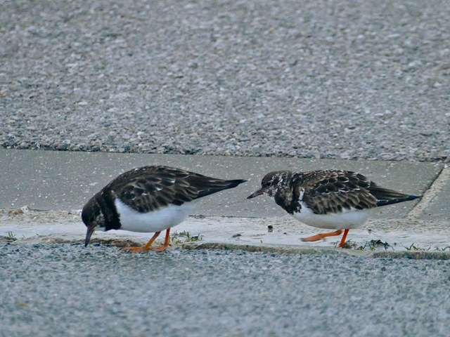 Ce groupe fréquente ce parking depuis au moins le début de l'année. En compagnie de Mouettes rieuses et de goélands argentés, ils se nourrissent d'animalcules qu'ils trouvent dans les anfractuosités du macadam.