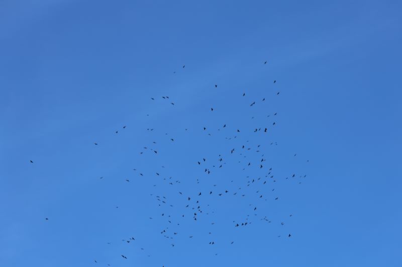 Au moins 26 oiseaux, répartis en trois groupes. Le premier de douze individus aperçu au sommet à 14H35 faire demi-tour vers le plateau, fuyants et inquiets. Un second groupe de sept oiseaux s'envolant et attaqué par un faucon d'Eléonore. Enfin un troisième groupe d'au moins sept individus, vraisemblablement arrivés en premier car ils étaient déjà en train de se nourrir et étaient très confiants. Au moins 22 oiseaux observés jusqu'à 15h45.