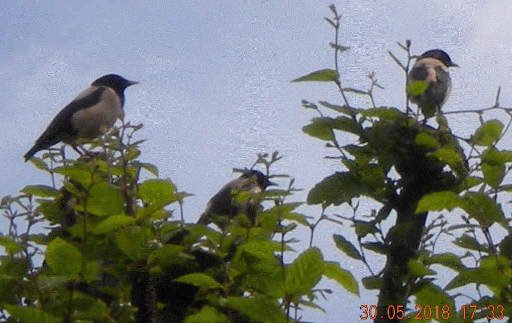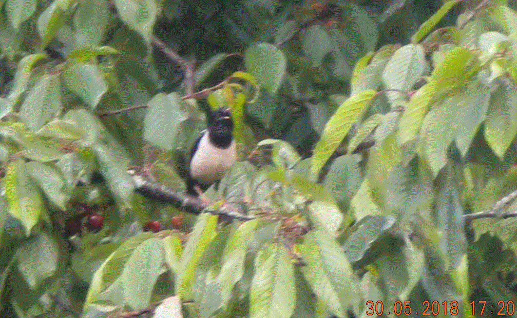 Arrivée d'une dizaine d'étourneaux roselins en milieu d'après-midi. ils sont restés jusqu'en soirée et ont profité du cerisier. le lendemain matin, ils étaient déjà repartis.