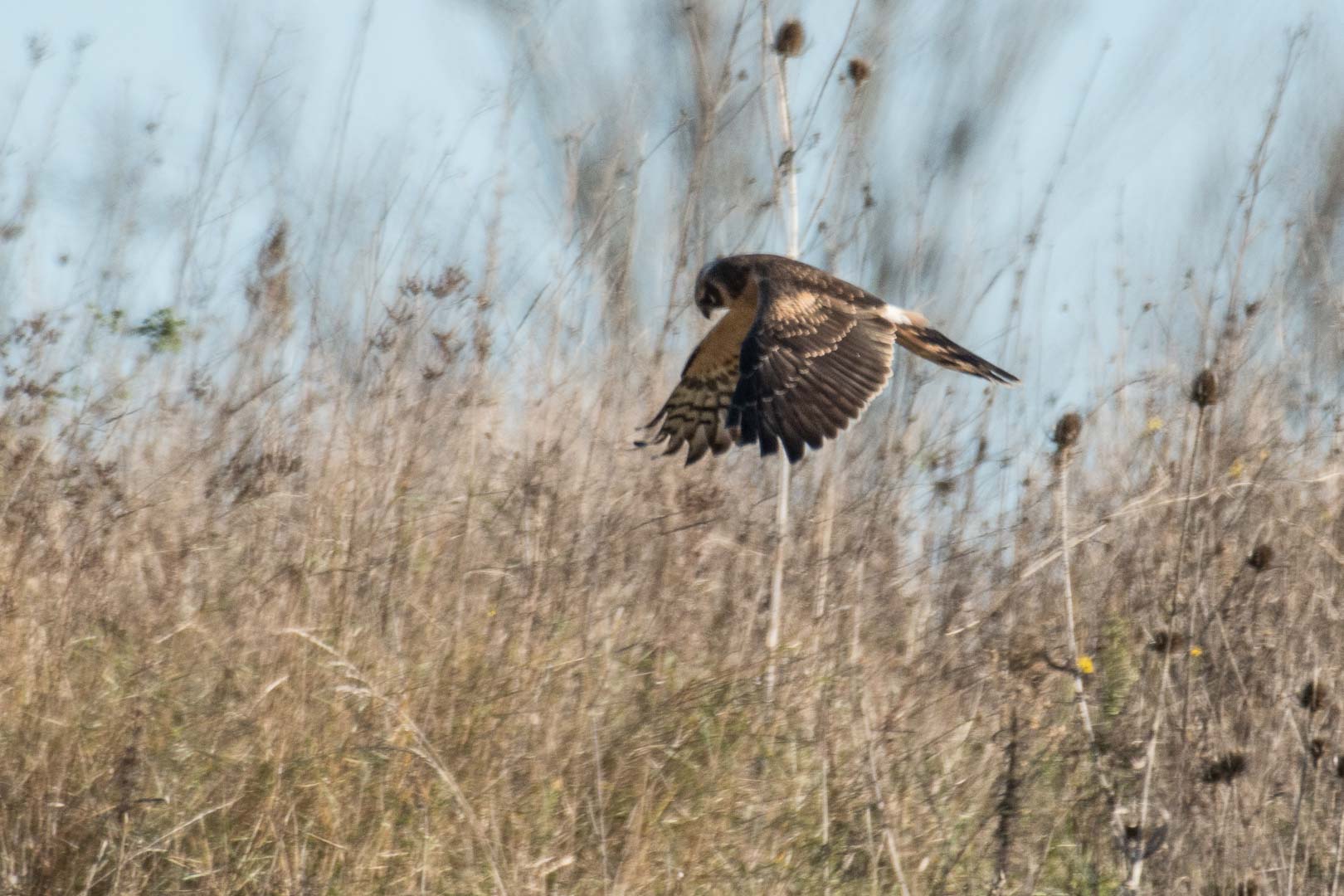 Busard pâle observé le 6 et 7 décembre en vol rasant au dessus d'une prairie en friches en milieu d'après midi.