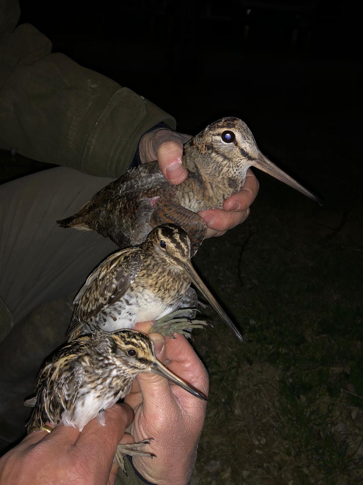 Baguage nocturne. Assez exceptionnel, dans la même parcelle, ont été capturées la bécasse des bois et les bécassines des marais et sourde.