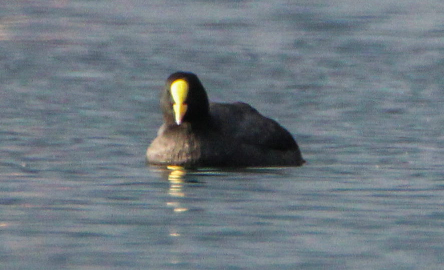Foulque macroule présentant une coloration jaune de la plaque et du bec