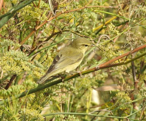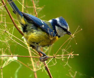 - Fenouil sauvage ou commun (Foeniculum vulgare) : une grande fleur pouvant atteindre 1,5 mètre de haut, aux fleurs jaunes (floraison de juillet à octobre) et au joli feuillage léger dégageant une agréable odeur quand on les froisse. Elle doit être semée dans un sol drainé plus ou moins riche, du printemps à l’automne. C’est une plante rustique (jusqu’à -25°C). C’est une plante appréciée par de nombreux insectes butineurs et auxiliaires, et ses graines et son nectar sont mangés par beaucoup de passereaux. La Mésange bleue (Cyanistes caeruleus) apprécie particulièrement ses graines.