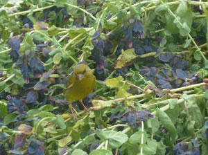 - Cerinthe bleue (Cerinthe major purpurascens) : Anne Provost Delage nous indique que le Verdier d’Europe (Chloris chloris) apprécie les graines de cette annuelle de la famille des Borraginacées aux belles fleurs bleues.