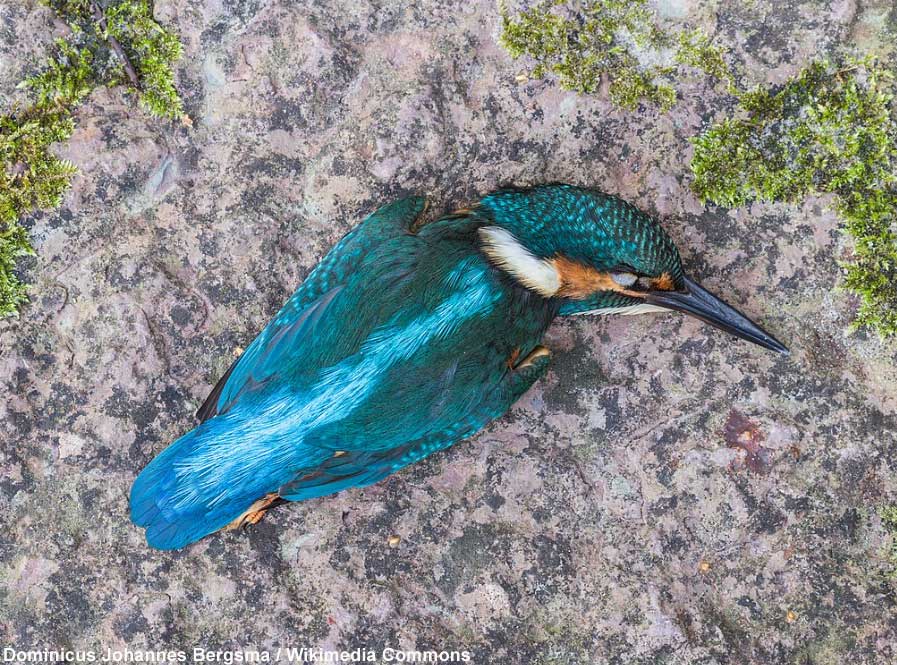 Martin-pêcheur d’Europe (Alcedo atthis) mort après avoir heurté une vitre (cliquez sur la photo pour l’agrandir). |