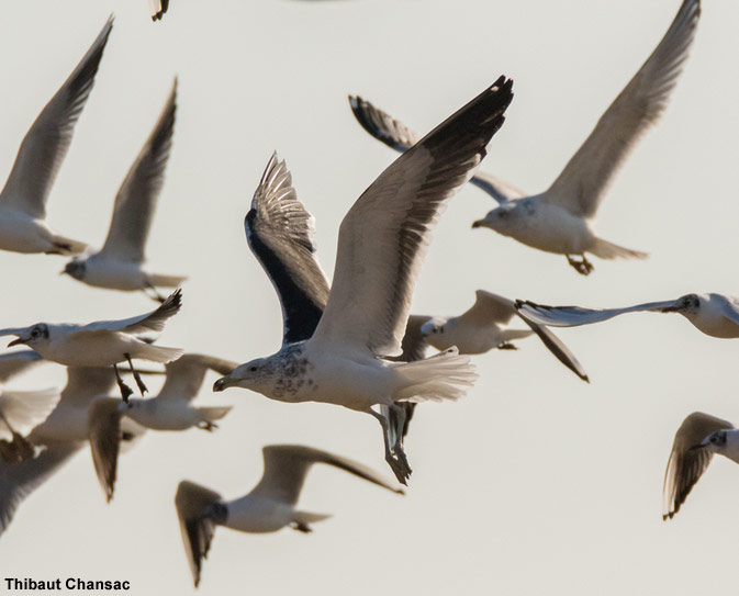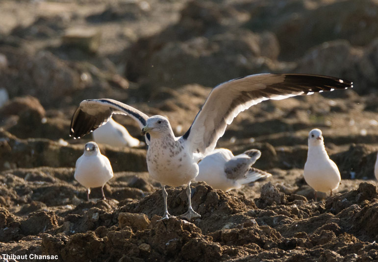 - un écart important entre les pointes des rémiges P7 et P8, une caractéristique rare chez les goélands du Paléarctique occidental;