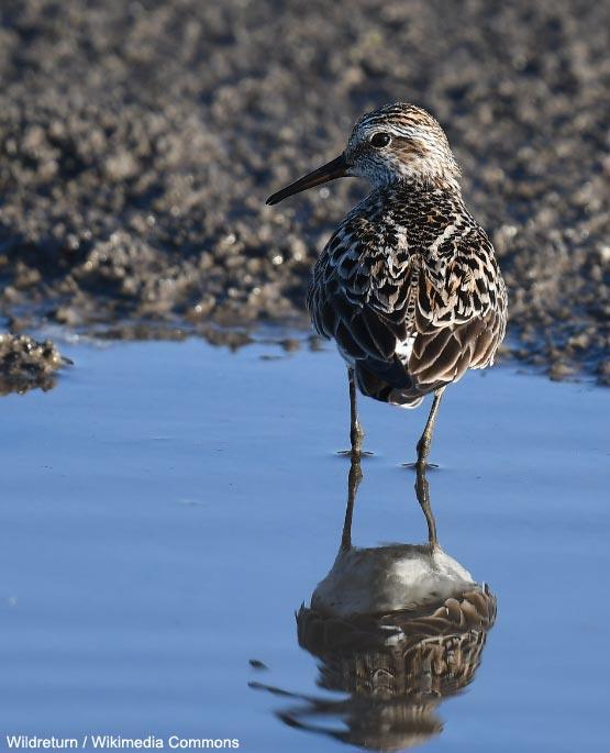 • Des stries sombres sur la poitrine et sur les flancs, le distinguant aussi du Bécasseau de Baird.